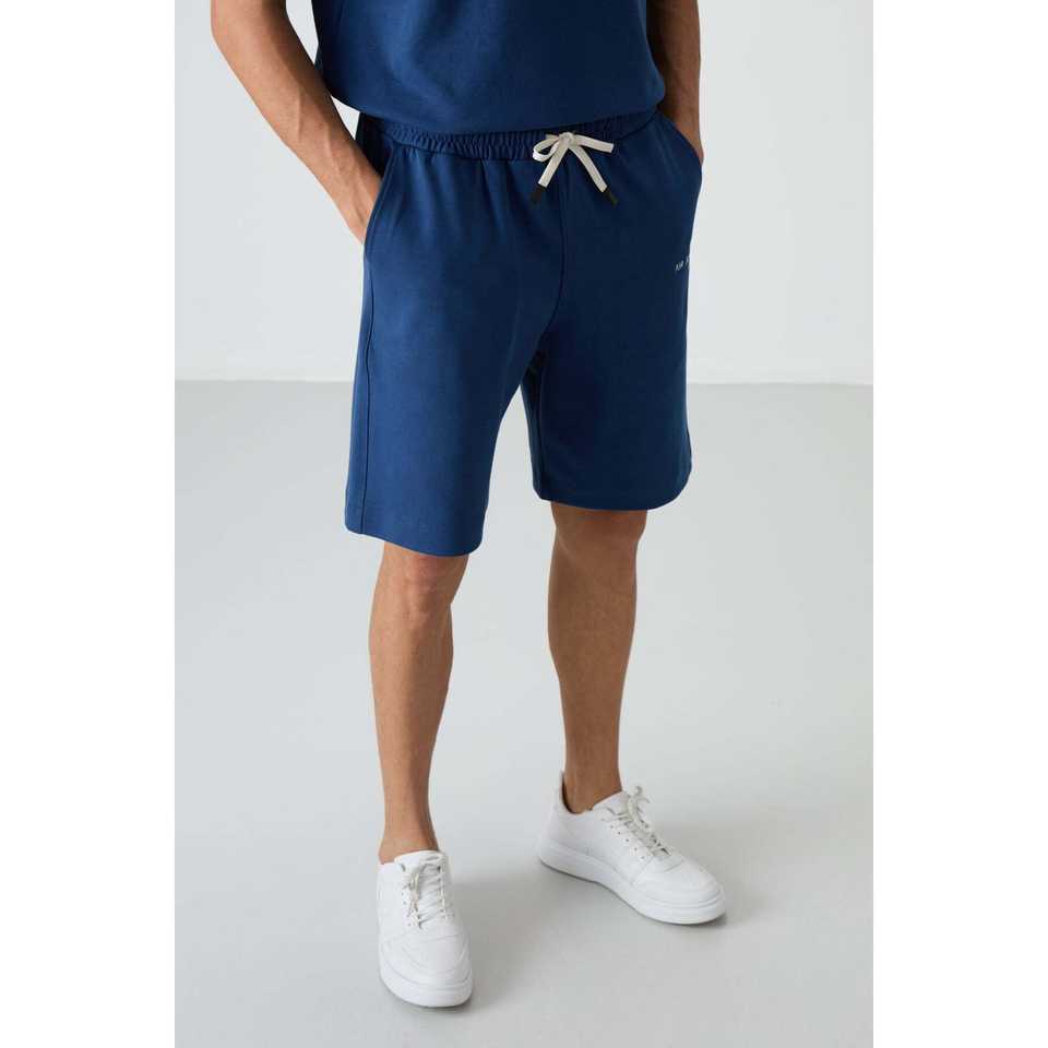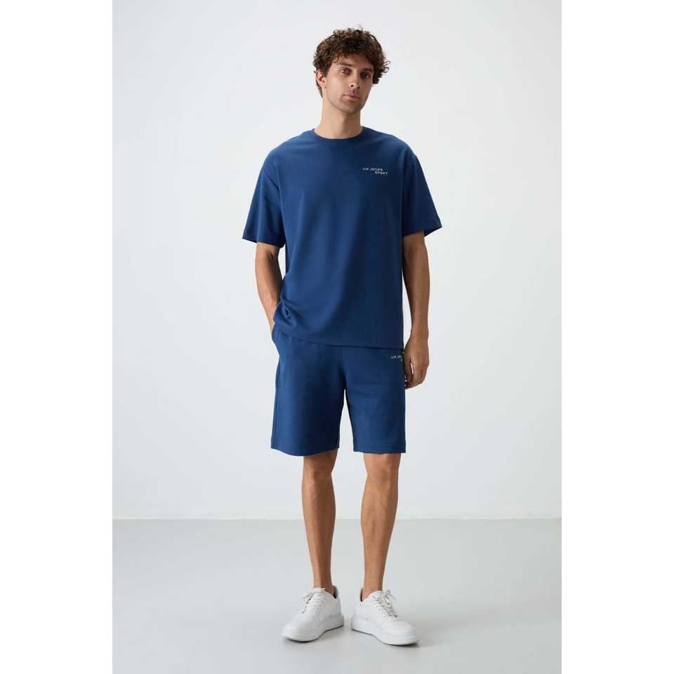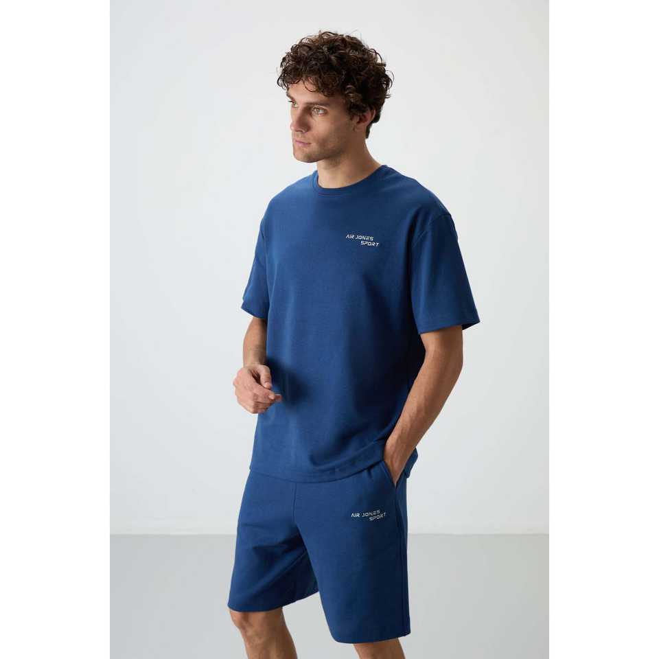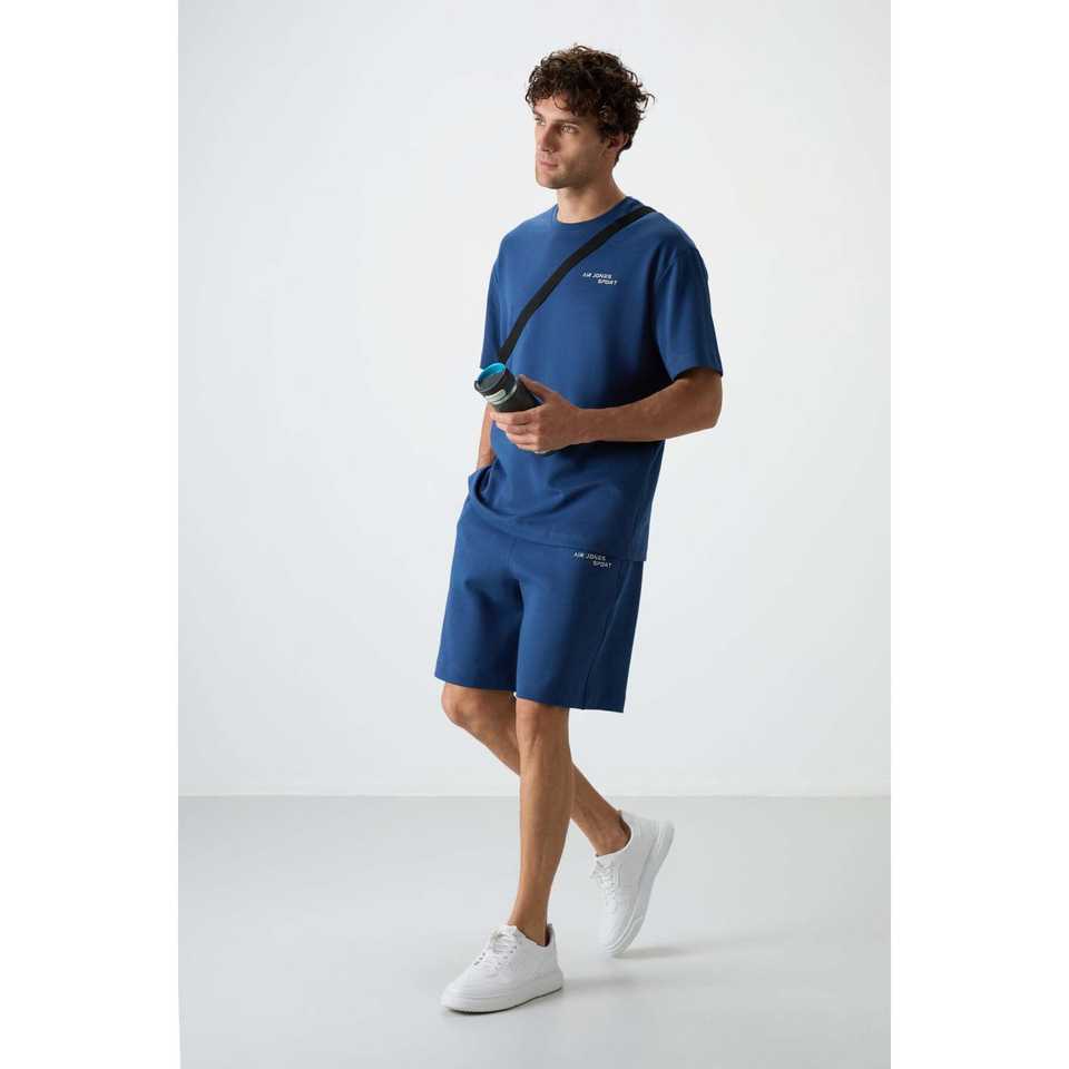 ชุดกางเกงขาสั้นโอเวอร์ไซส์ผ้าฝ้ายสำหรับผู้ชาย รุ่น Parliament สีน้ำเงิน ผ้าฝ้าย 100% ทรงเบอร์มิวดา สวมใส่สบาย เหมาะสำหรับลำลอง