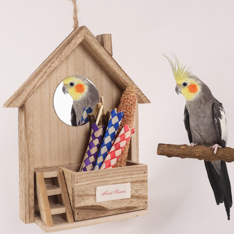 กรงนกแก้วทำจากไม้เป็นมิตรกับสิ่งแวดล้อมใช้ในการตกแต่งภายในกรงนกแก้วฟางข้าวสาลี