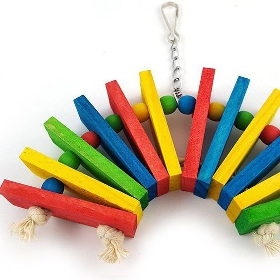 ของเล่นนกแก้ว บล็อกตัวต่อรูปพัดสีสันสดใส ของเล่นเคี้ยวเล่นพร้อมชิงช้าหมุนและบันไดสำหรับนก