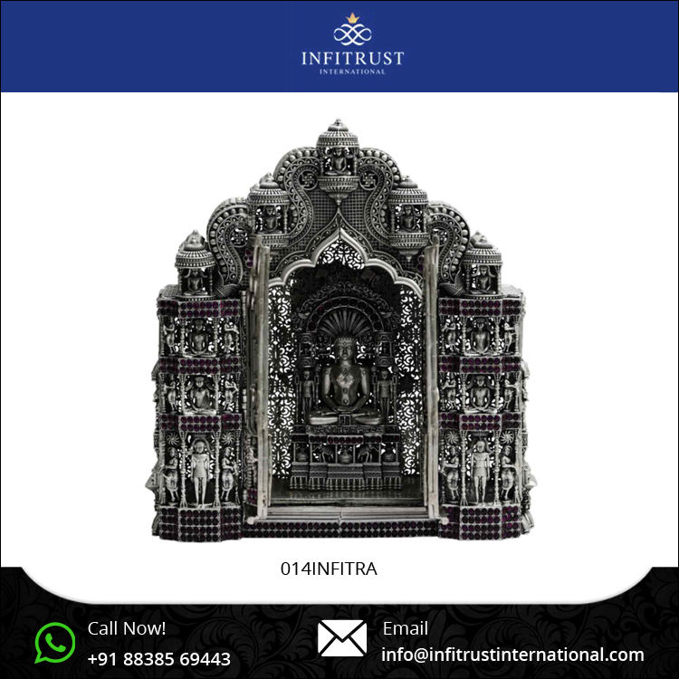 พระพุทธรูปเงินประดับประตูวัดปาร์ชวานัต ชุบเงินแท้ 925 คุณภาพดี ของขวัญและงานฝีมือสำหรับพิธีขึ้นบ้านใหม่และการบูชา