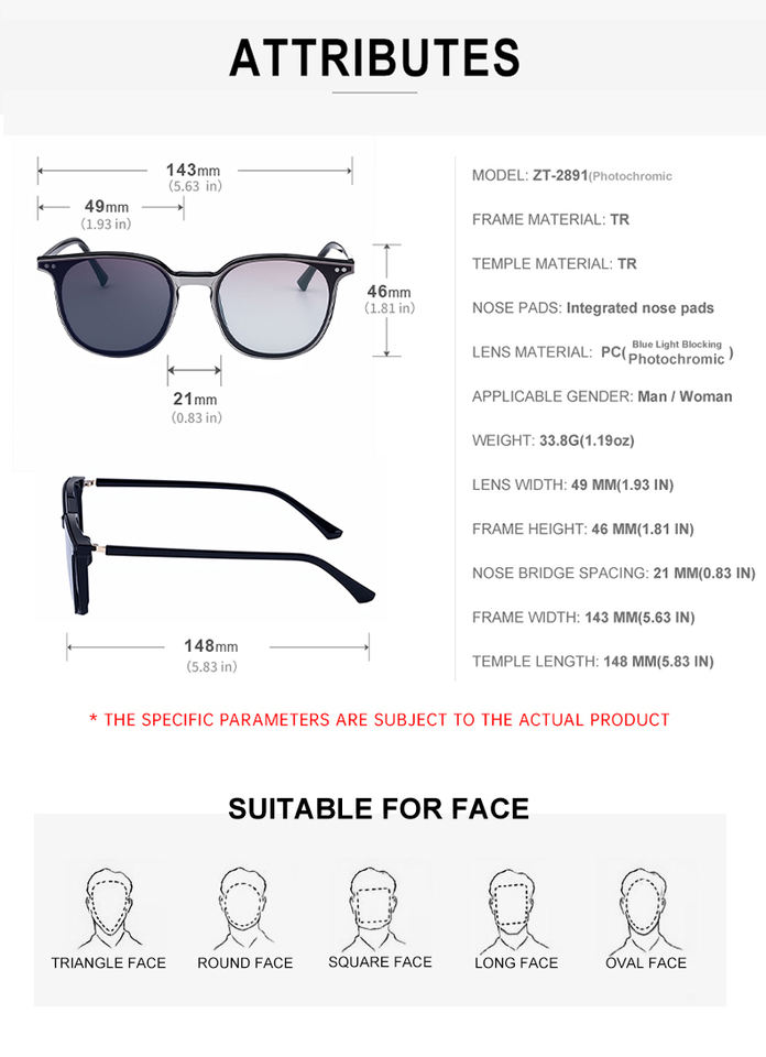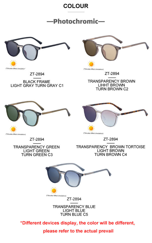 Partagas Fashion Trendy Custom Logo Clip on Round TR90 Photochromic Anti Blue Light UV400 Sun Glasses Sunglasses for Women Men