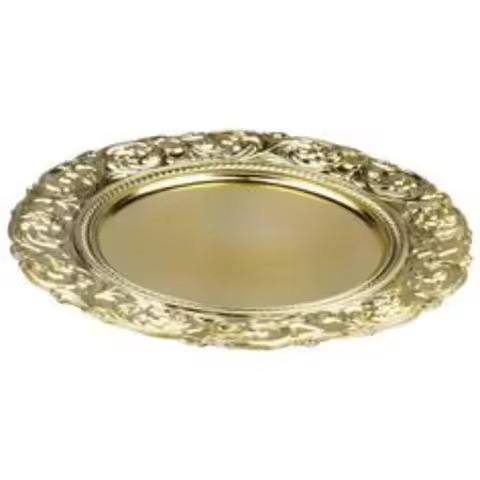 จานรองโลหะสีทองสำหรับตกแต่งงานเลี้ยง จานเหล็กสำหรับงานจัดเลี้ยงอาหารค่ำ