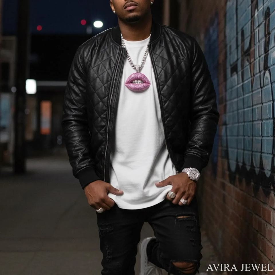 จี้รูปปากสีชมพูประดับเพชรโมอิสซาไนต์ VVS สีขาว ดีไซน์ทันสมัยไม่ซ้ำใคร ทำจากเงินแท้ 925 คุณภาพสูง สวยหรู
