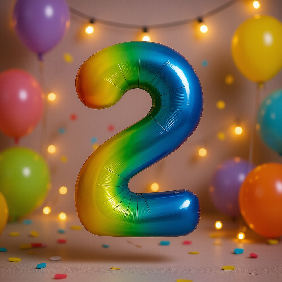 ลูกโป่งปาร์ตี้เลิฟ หมายเลข 2 หลากสี 1M แบบสองด้าน 12 ชิ้น/ถุง