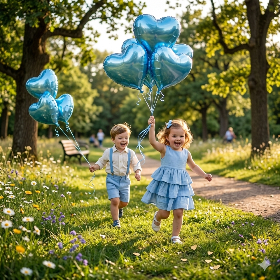 ลูกโป่งฟอยล์รูปหัวใจสีฟ้า ขนาด 24 นิ้ว/60 ซม. ผิวโครเมียมเมทัลลิกมุก สำหรับงานปาร์ตี้วันแม่ งานรับปริญญา งานปีใหม่จีน