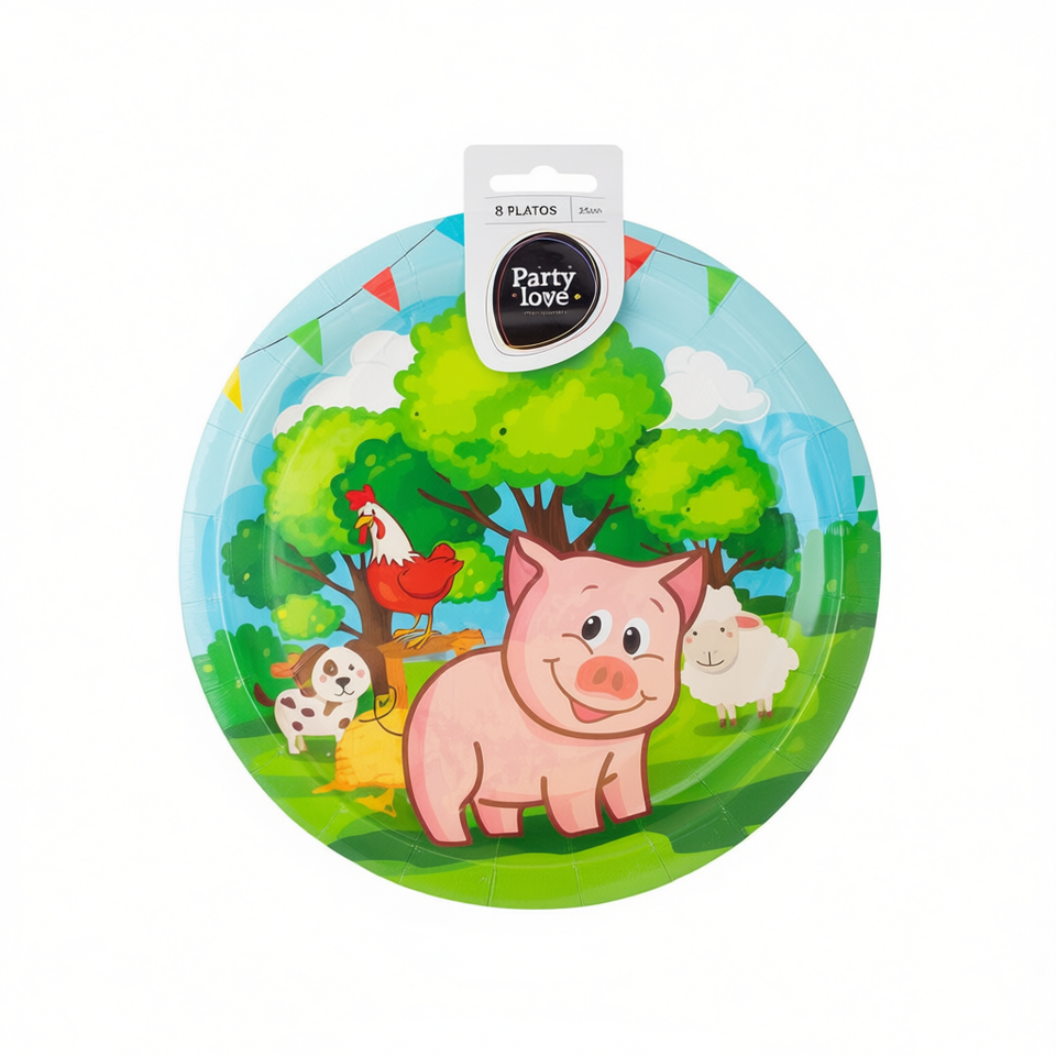 จานกระดาษธีมปาร์ตี้เลิฟฟาร์ม ขนาด 23 ซม. 8 แพ็ค อุปกรณ์จัดปาร์ตี้แบบใช้แล้วทิ้ง