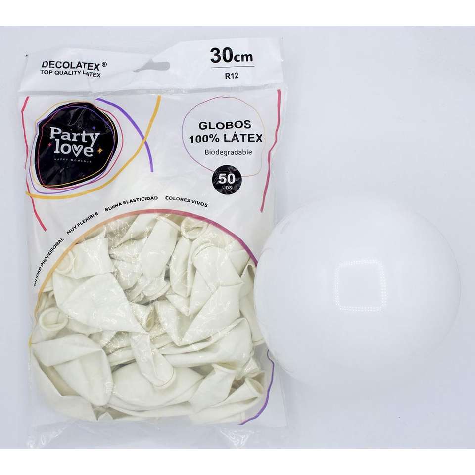 ลูกโป่งปาร์ตี้เลิฟวันเกิด ลาเท็กซ์ทรงกลม 30 ซม. R12 สีขาว ย่อยสลายได้ 50 ชิ้น