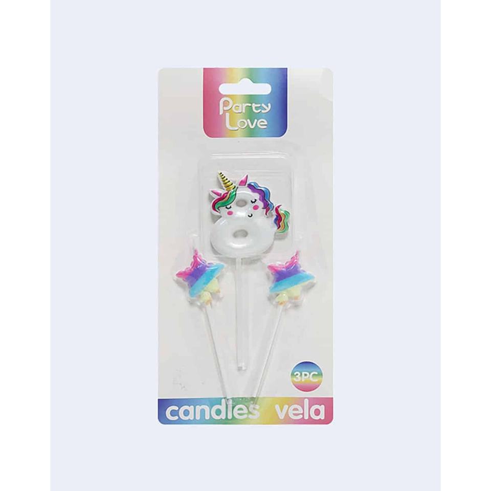 Party for Unicorn Paraffin Wax Non-Toxic Birthday Candles Number 8 with Two Stars 3Pc