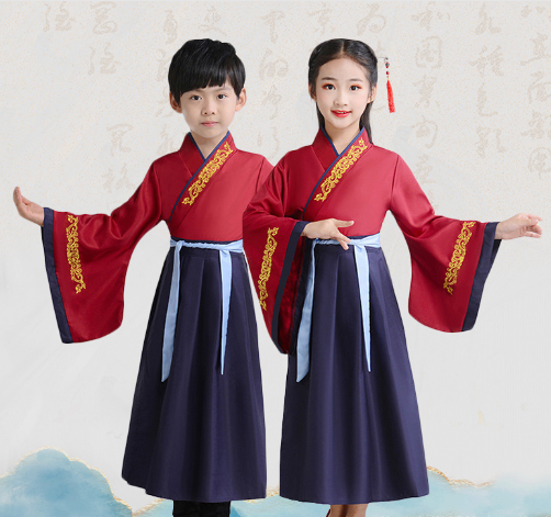 ปาร์ตี้เสื้อผ้าปีใหม่เด็กชายและเด็กหญิงราชวงศ์ฮั่นจีนแบบดั้งเดิมฮันฟู่เด็ก