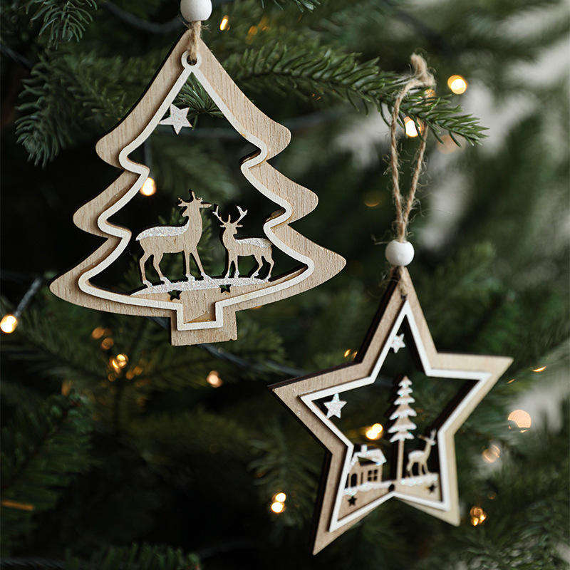 ตกแต่งงานปาร์ตี้ปีใหม่งานไม้งานฝีมือแบบทำมือจี้ไม้คริสต์มาสเครื่องประดับแขวนต้นคริสต์มาส