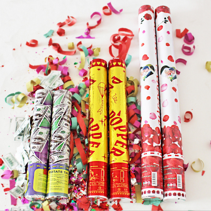 ปาร์ตี้ป๊อปเปอร์ ปาร์ตี้ป๊อปเปอร์ โบตัล เฟสติวัล แบบกำหนดเอง 30 ซม. 60 ซม. รูปหัวใจสีโรสโกลด์ ป๊อปเปอร์คอนเฟตติ