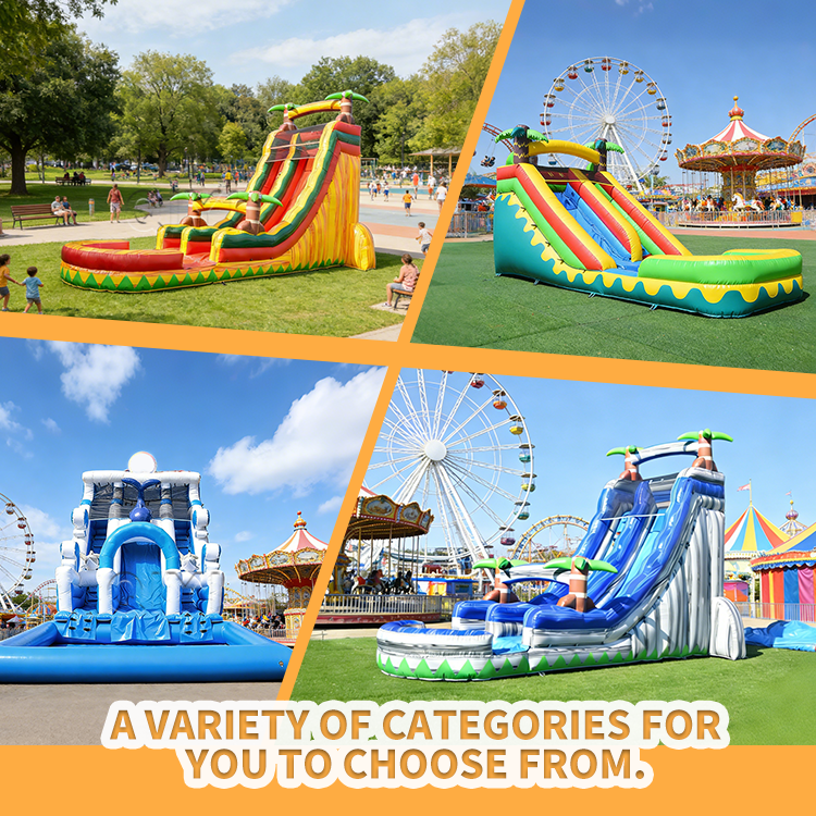 สไลเดอร์น้ำเป่าลมพีวีซีเกรดเชิงพาณิชย์สำหรับกลางแจ้ง ขนาด 22 ฟุต สำหรับเด็กและผู้ใหญ่ สวนสนุกผจญภัย รับประกัน 2 ปี