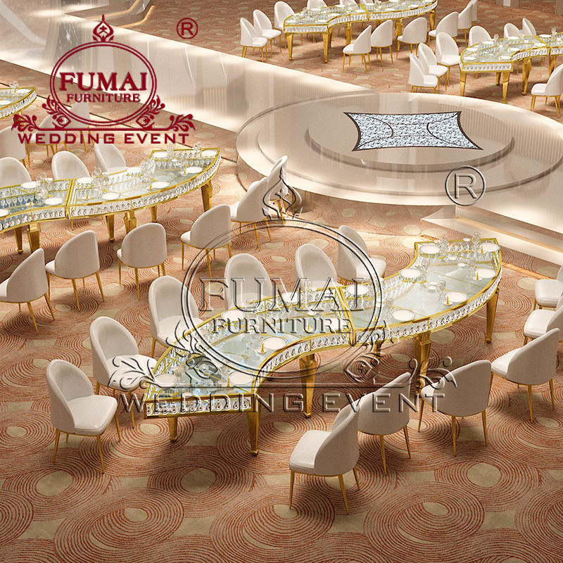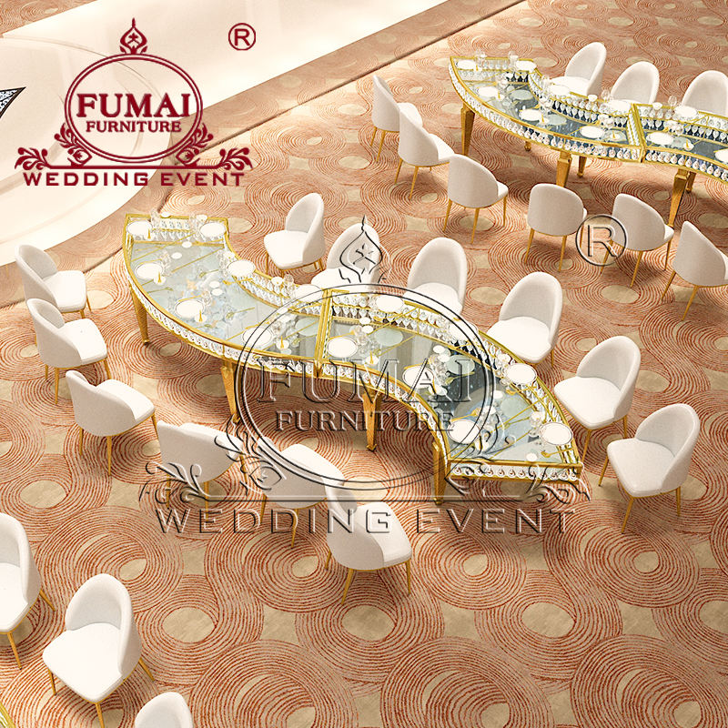 โต๊ะสแตนเลสสำหรับงานเลี้ยงรูปทรงกลมกลมครึ่งโต๊ะสำหรับงานแต่งงาน