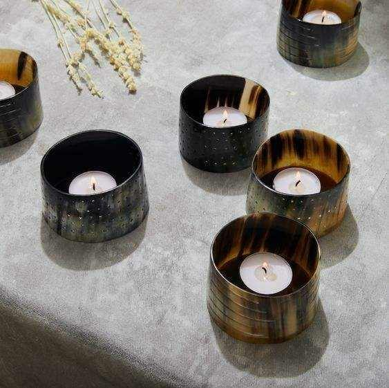 เชิงเทียนทำมือจากเขาควายขัดเงาธรรมชาติ 100% งานฝีมือคุณภาพสูง รูปทรงพระจันทร์เสี้ยว สำหรับตกแต่งงานปาร์ตี้