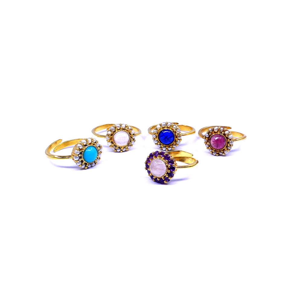 แหวนคู่สไตล์คลาสสิกสำหรับผู้หญิงประดับด้วยพลอยควอตซ์ชุบทองสเตอร์925ชุดปาร์ตี้