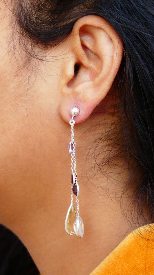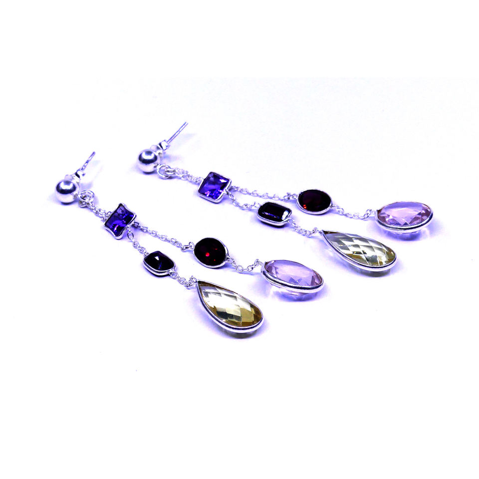 เครื่องประดับชุบทองเงินสเตอร์ลิงประดับอัญมณีหลากสีสำหรับใส่ในงานปาร์ตี้925ต่างหูแบบห้อย