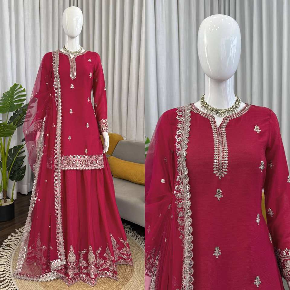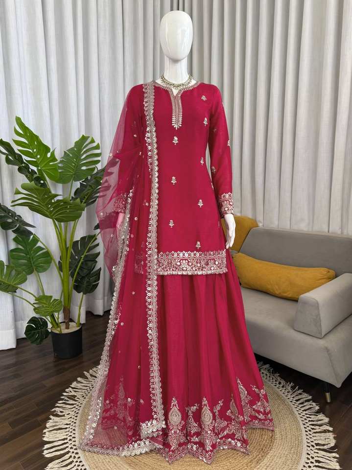 ชุดชาราร่าผ้าไหมชีนอนปักดิ้นลายประดับเลื่อมสำหรับงานปาร์ตี้