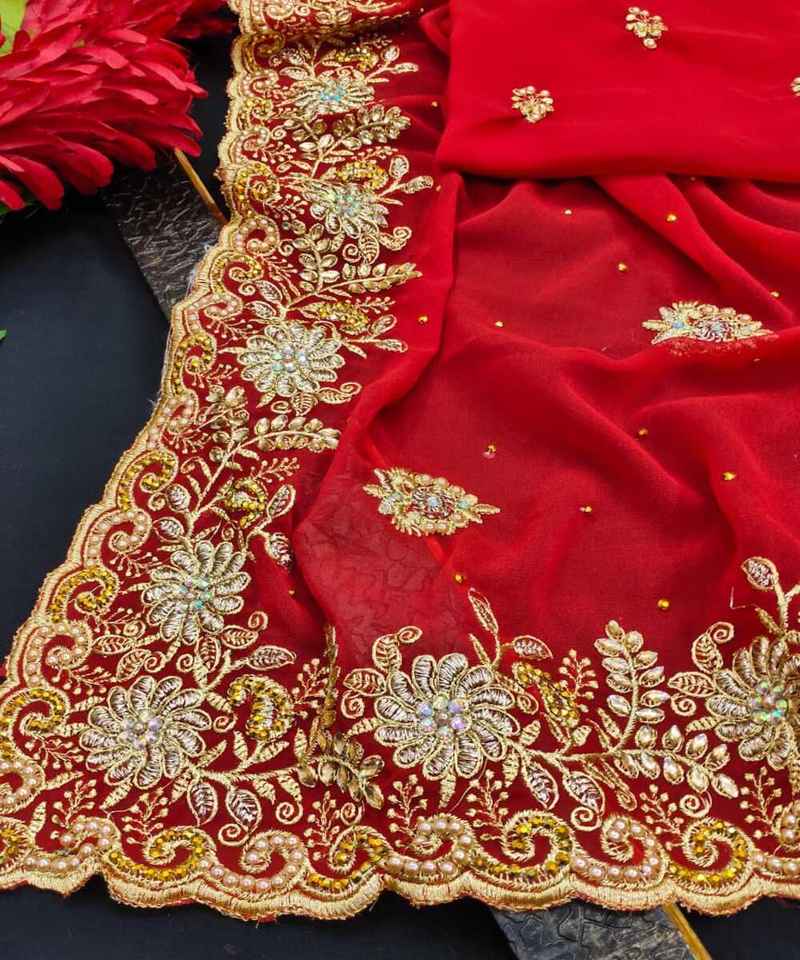 ชุดปาร์ตี้ผ้าส่าหรีสีส้มสำหรับผู้หญิงอินเดียปักลายดอกไม้ทำจากผ้าไหมตาข่ายพร้อมเสื้อสำหรับใส่ทำงานส่าหรี
