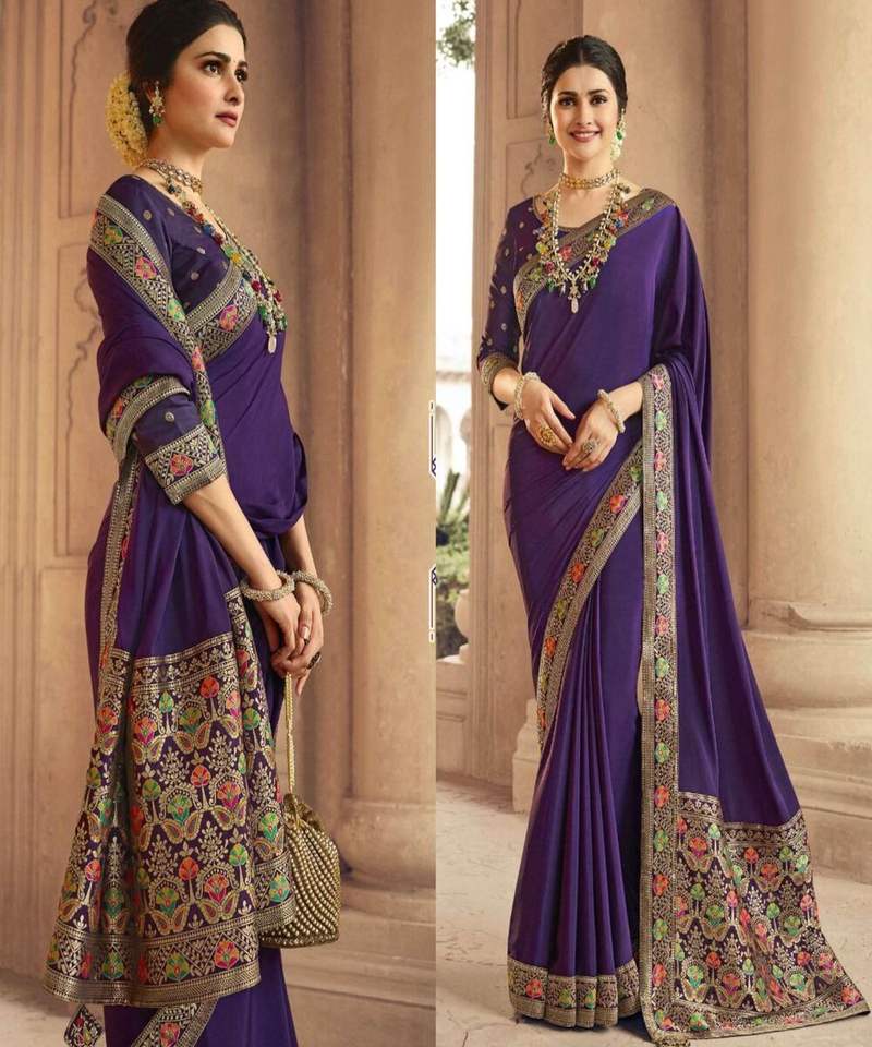 ชุดส่าหรีที่มีวัสดุวิสคอสสำหรับงานแต่งงานหรูหราชุดปาร์ตี้