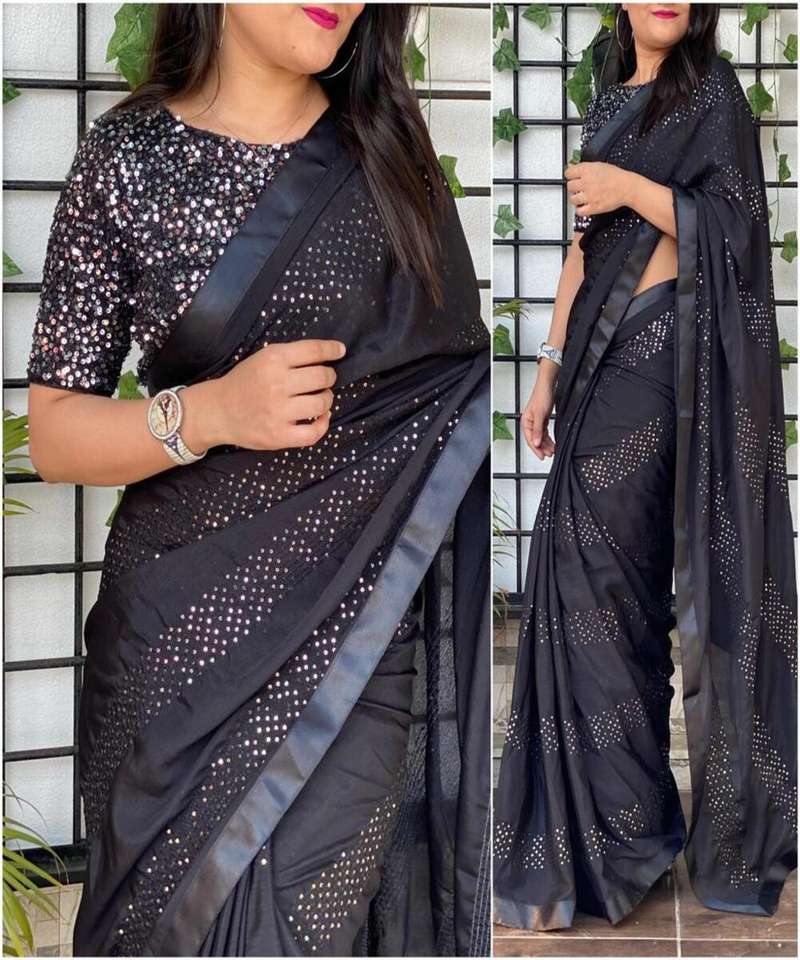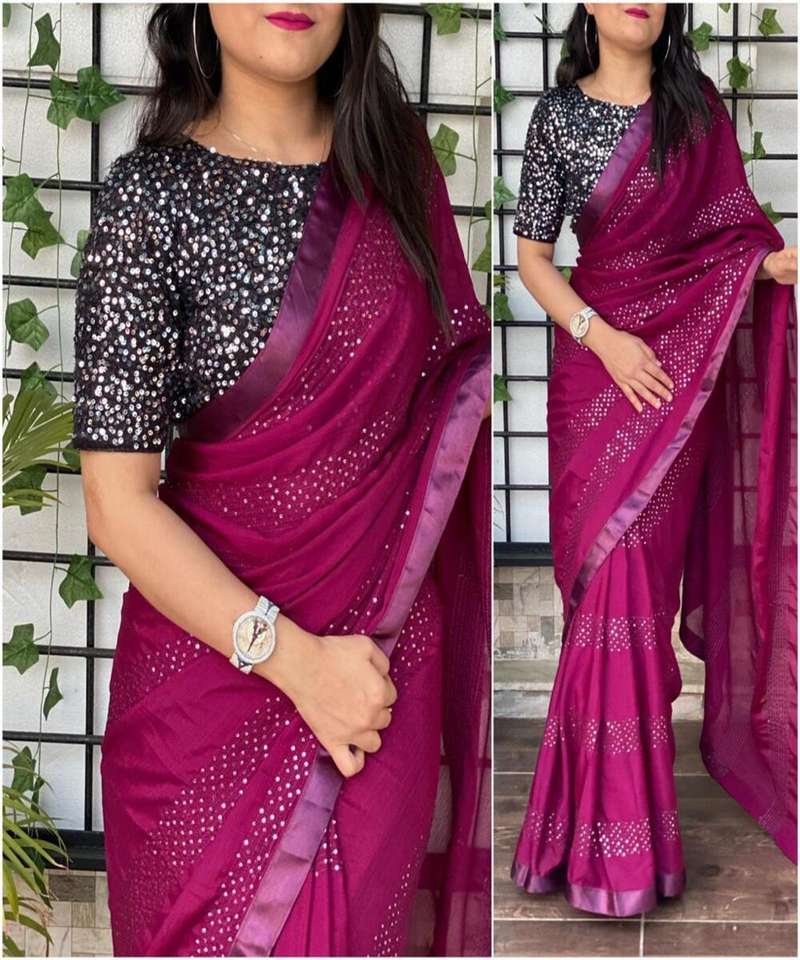 ส่าหรีเสื้อเนื้อด้านสำหรับผู้หญิงชุดปาร์ตี้งานปักลายส่าหรี