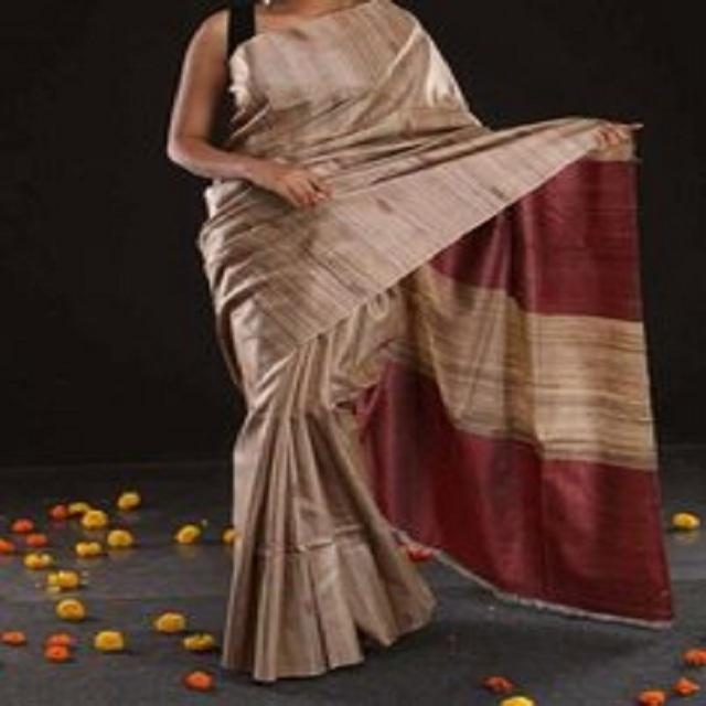 สวมใส่ PLAIN PURE Tussar Silk Saree
