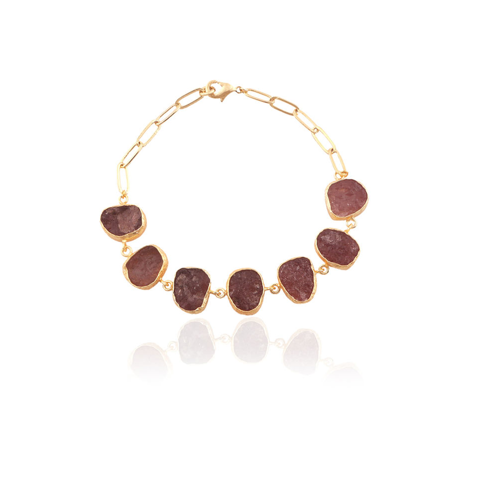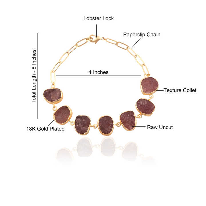 ปาร์ตี้สวมสร้อยข้อมือเครื่องประดับอัญมณีหยาบของแท้ดิบรูปลักษณ์สร้อยข้อมือเชอร์รี่ควอตซ์ทองเหลืองสร้อยข้อมือโซ่กระดาษหนีบชุบทอง