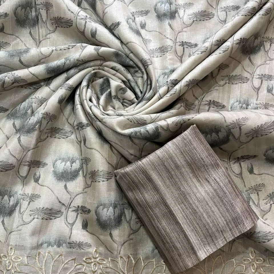 ชุดส่าหรีสำหรับผู้หญิงเสื้อเบลาส์ผ้าไหมทัสซาร์แบบไม่มีตะเข็บงานปักลายดอกไม้สำหรับปาร์ตี้