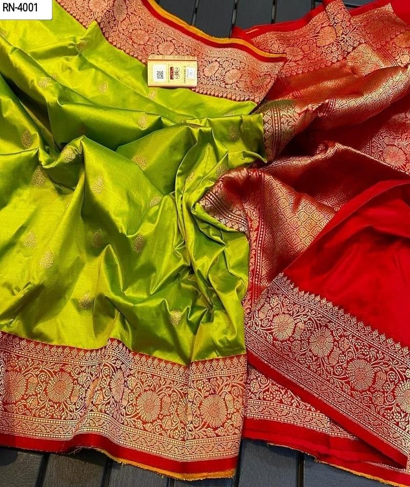 ปาร์ตี้สวมผ้าไหมสารีกับขอบงานทอผ้าและเสื้อเบลาส์ลาย Butti หนักสําหรับงานแต่งงานของผู้หญิงสวมผ้าสารีลายแฟนซี