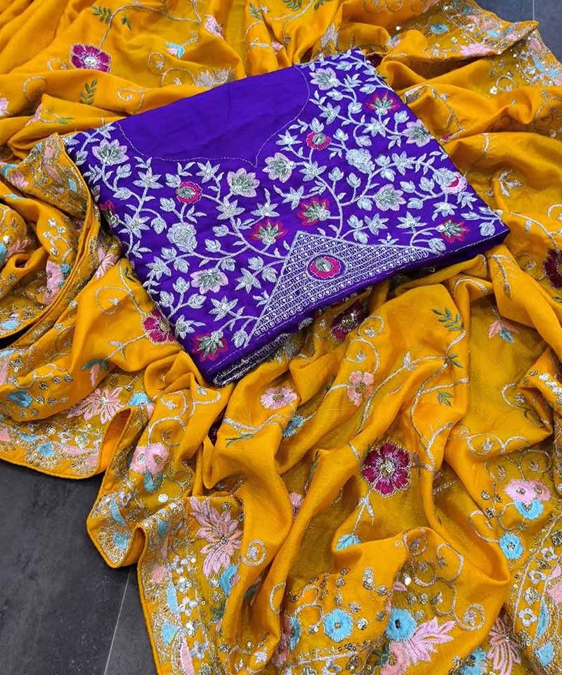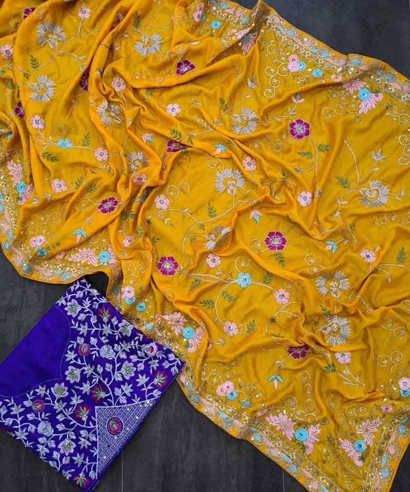 ชุดปาร์ตี้ผ้าส่าหรีสีส้มสำหรับผู้หญิงอินเดียปักลายดอกไม้ผ้าไหมตาข่ายปักลายดอกไม้และประดับมุก