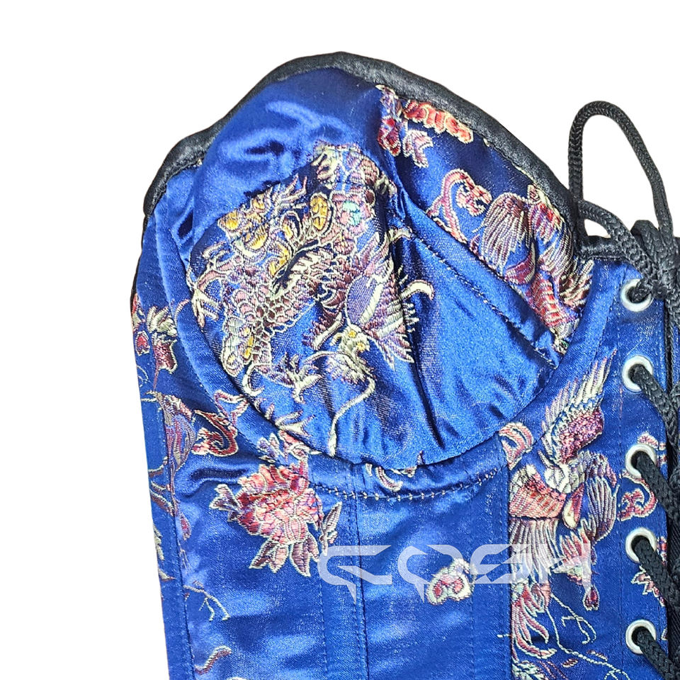 ชุดคอร์เซ็ทปักลายมังกรสีน้ำเงินแบบโอเวอร์บัสต์ พร้อมดีไซน์เชือกผูกด้านหน้า