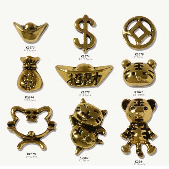 Paso sico 2022ปีเสือที่มีคุณภาพสูงเหรียญทองวินเทจและดอลลาร์เล็บศิลปะเสน่ห์10ชิ้น/ถุงสำหรับเครื่องประดับ3D