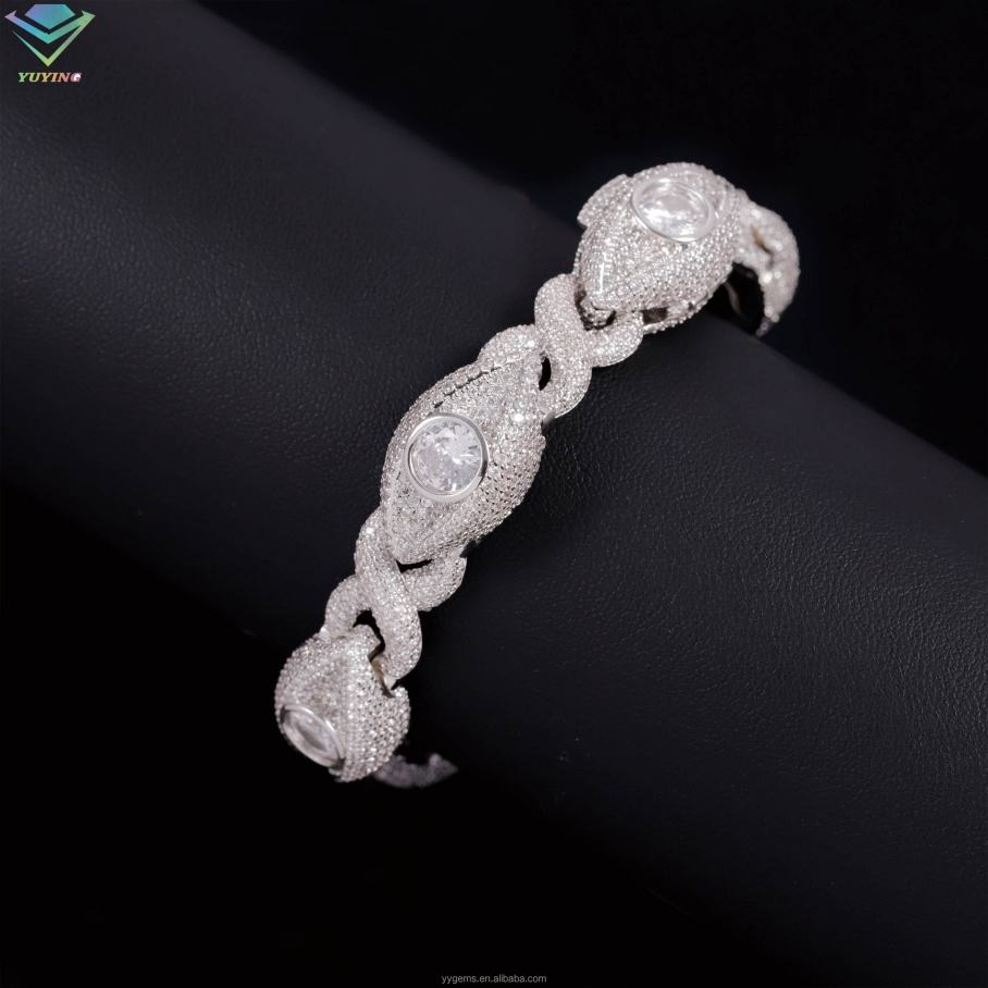 สร้อยข้อมือเงินแท้ 925 ผ่านการทดสอบเพชร สร้อยข้อมือฮิปฮอป ประดับเพชร สร้อยข้อมือเพชร VVS มอยส์ซาไนต์ สร้อยข้อมือคิวบา