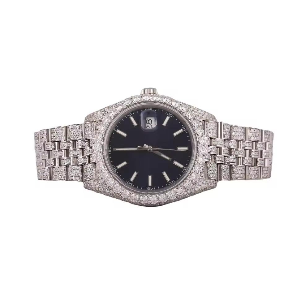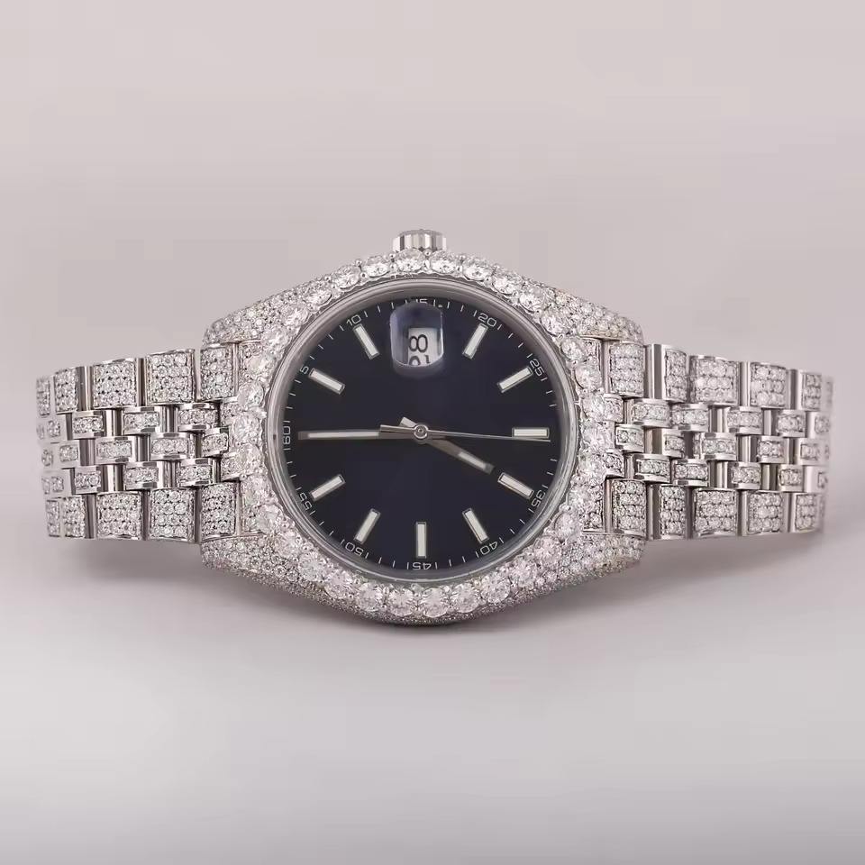 นาฬิกาโมอิสซาไนต์แบบกำหนดเองผ่านการทดสอบเพชร สี DEF ระดับความสะอาด VVS ประดับเพชรเต็มเรือน สไตล์ฮิปฮอป สำหรับทั้งชายและหญิง ระบบควอตซ์ หน้าปัดแบบเข็มชี้ HUMERA JEWELS