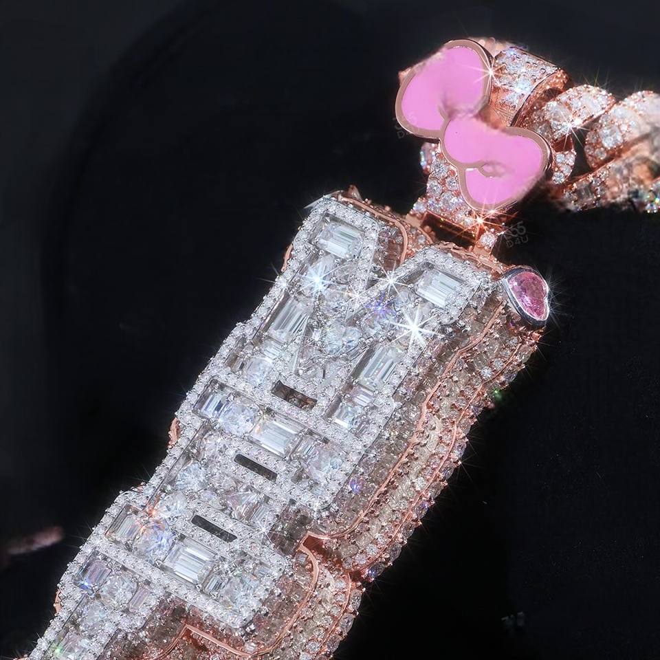 จี้เพชรฮิปฮอปแบบกำหนดเองพร้อมใบรับรอง GRA ตัวอักษรชื่อตามสั่ง เงินแท้ 925 ประดับเพชร VVS เต็มตัว สไตล์แร็ปเปอร์ จี้โมอิสซาไนต์