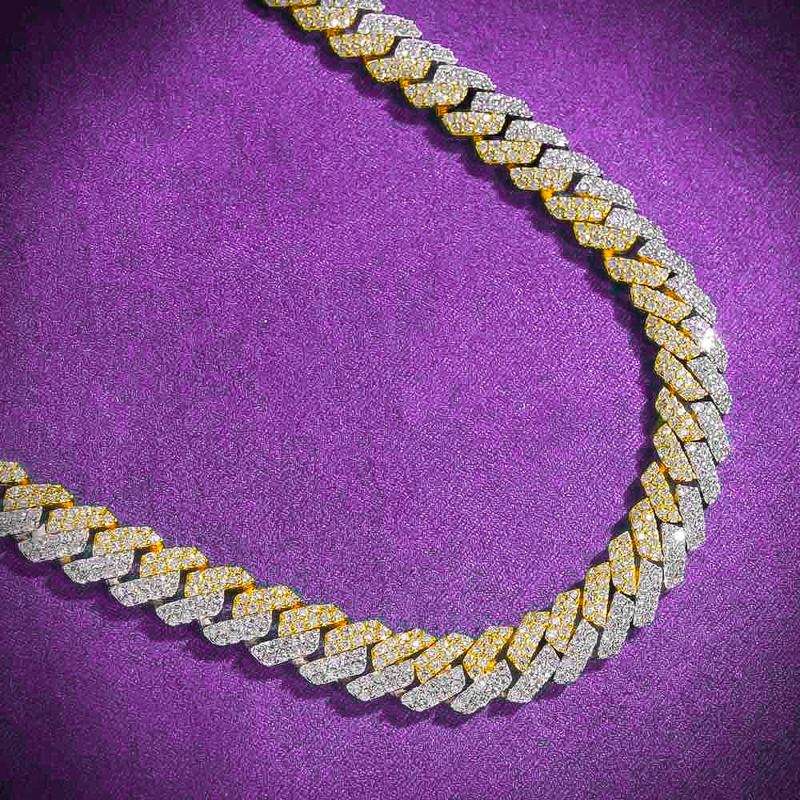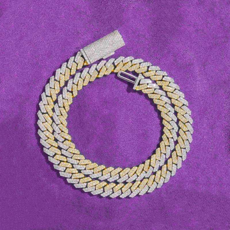สร้อยคิวบาลิงค์ผู้ชายประดับเพชรแล็บโกรว์สองสีแบบฮิปฮอป ผ่านการทดสอบเพชร เงินแท้ 925 ชุบทอง