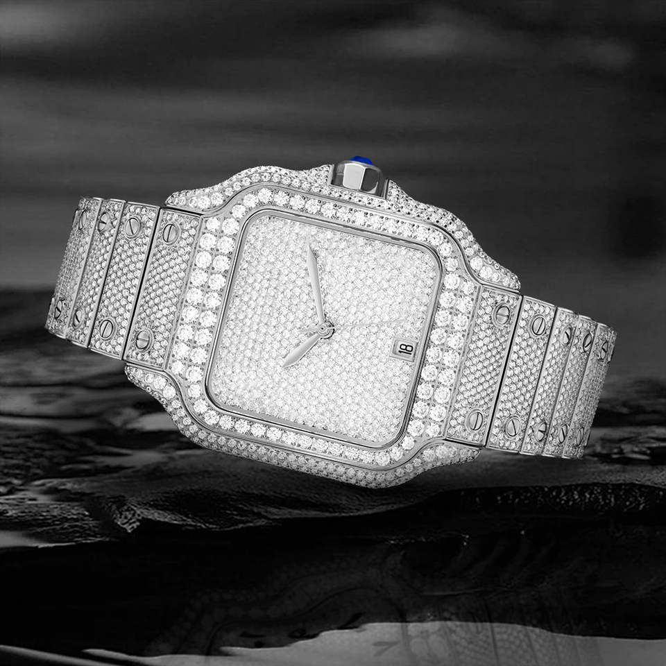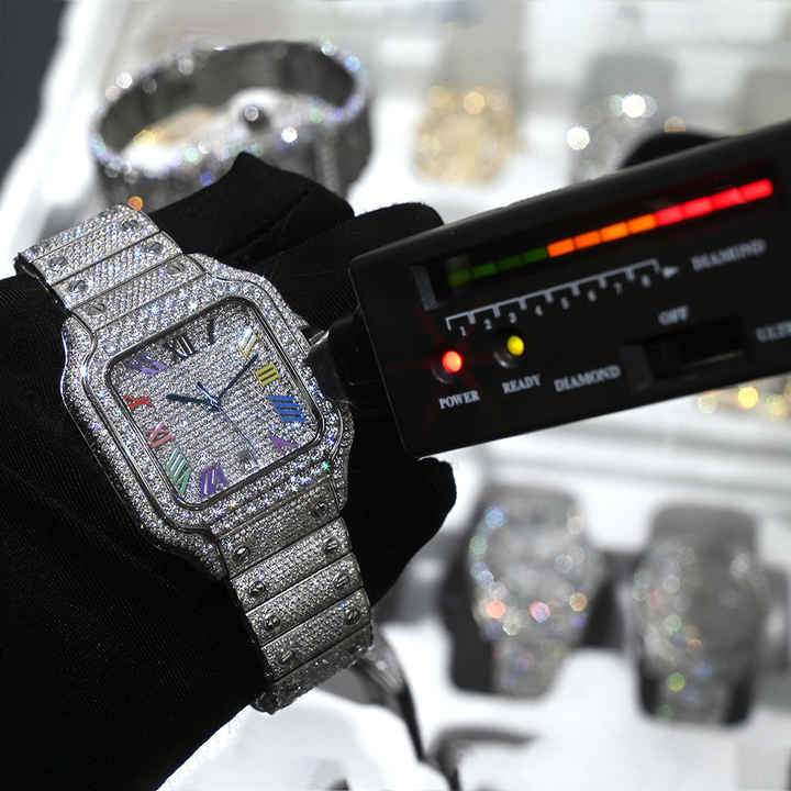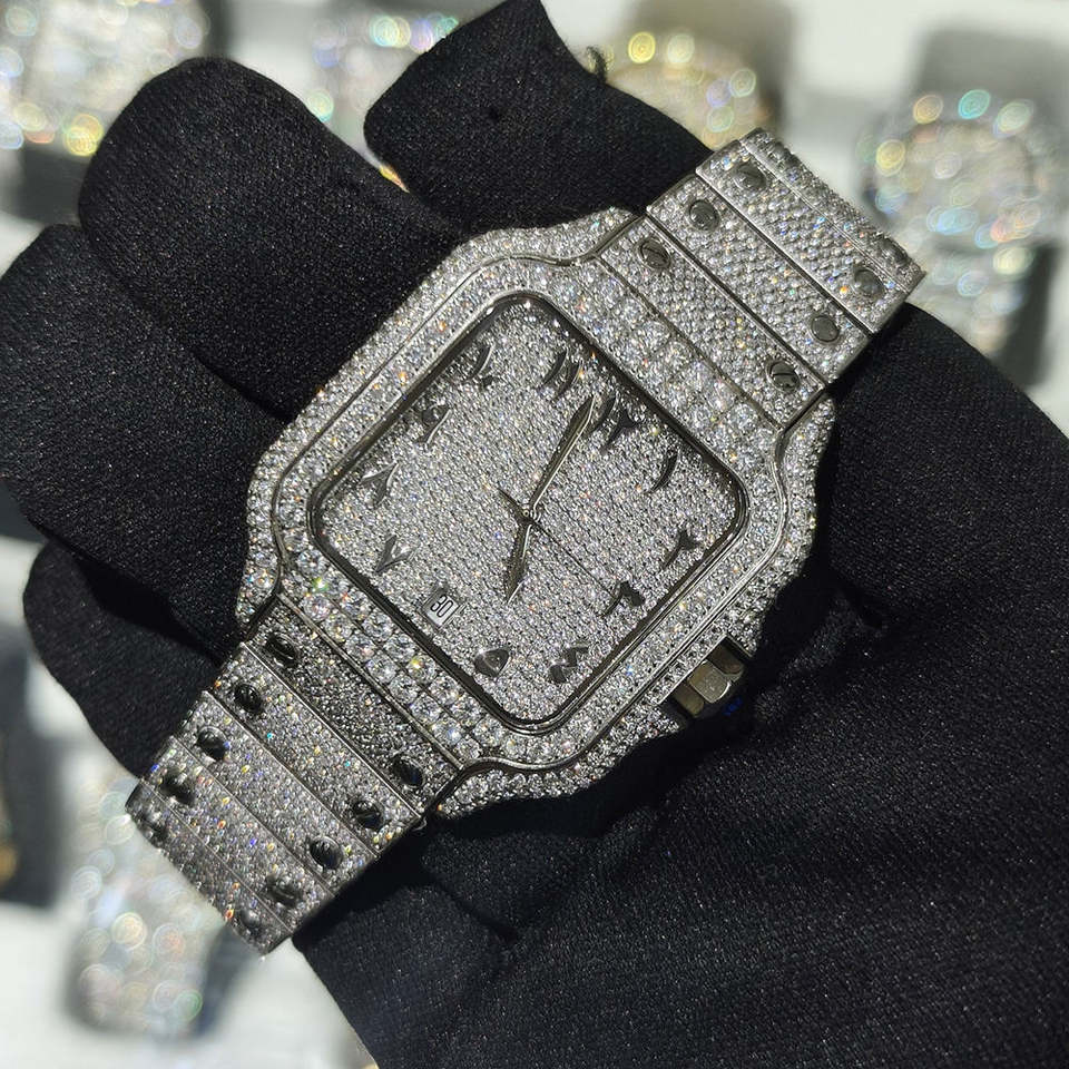 นาฬิกาข้อมือฮิปฮอปหรูหราประดับเพชร VVS มอยส์ซาไนต์ ตัวเรือนสแตนเลสสตีล ระบบออโตเมติก ผ่านการทดสอบเพชร