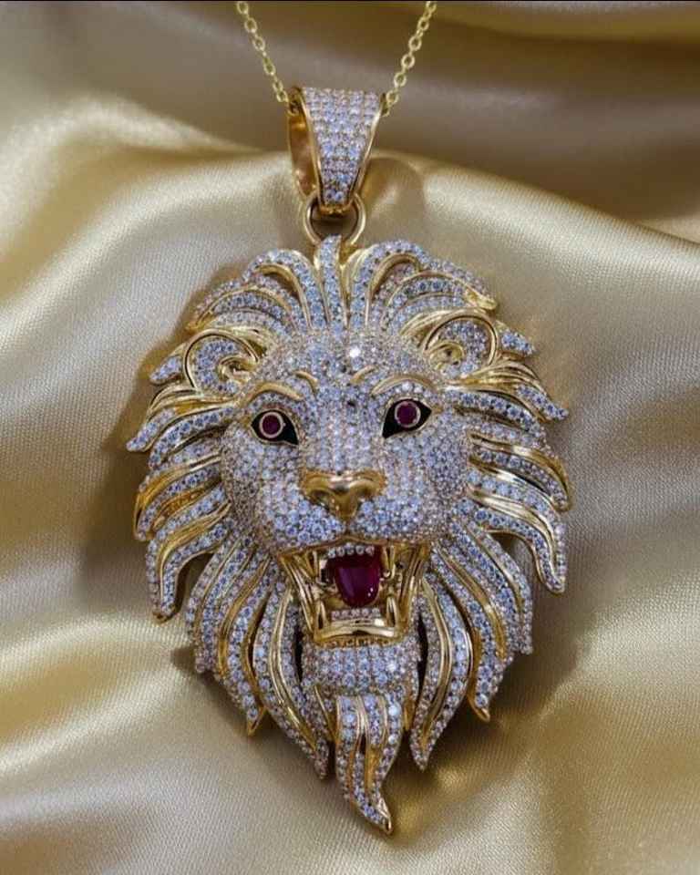 จี้เพชรทรงสี่เหลี่ยมแบบหน้าสิงโต แฟชั่นฮิปฮอป เครื่องประดับเงินแท้ 925 ประดับเพชรโมอิสซาไนต์สำหรับผู้ชาย
