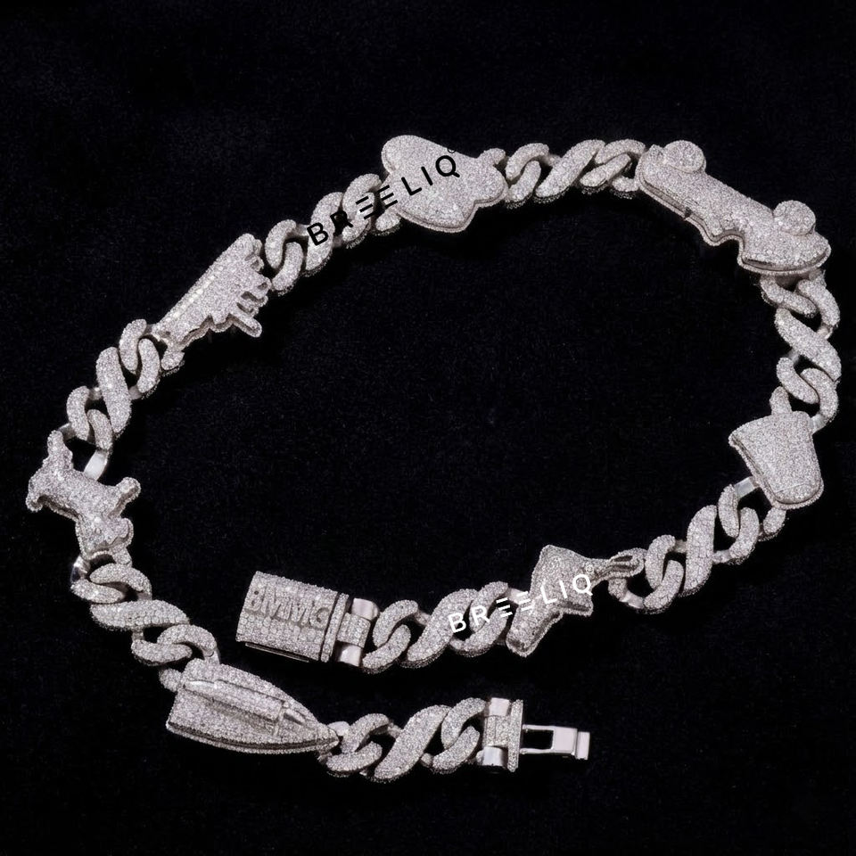 ผ่านการทดสอบเพชร VVS เพชรเลี้ยงในห้องปฏิบัติการ เงินแท้ 925 สร้อยคิวบาลิงค์แบบไมอามี่ ฮิปฮอป ประดับเพชรหลากหลายรูปทรง