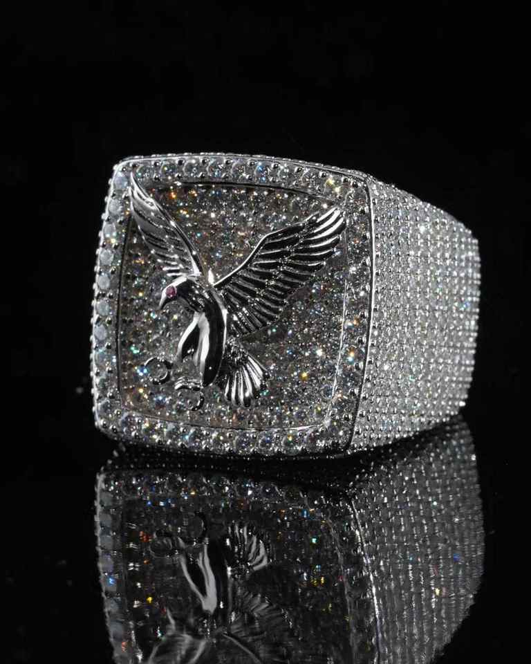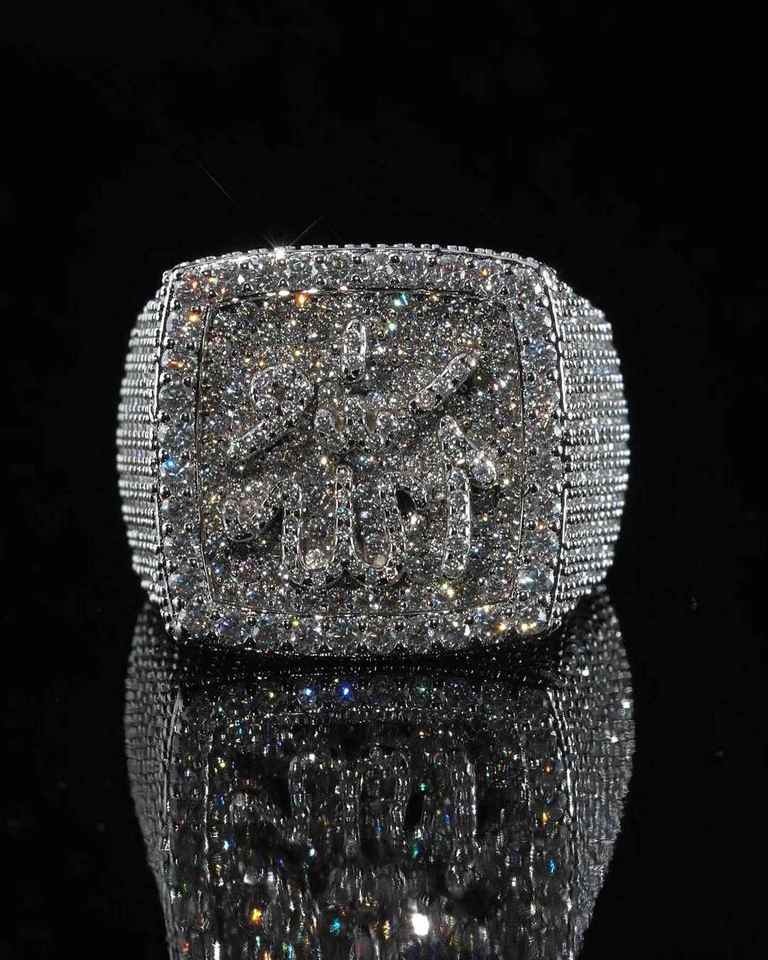 แหวนเงินแท้ 925 ชุบโรเดียม ประดับเพชรโมอิสซาไนต์ VVS ผ่านการทดสอบ พร้อมโลโก้แบบกำหนดเอง สไตล์ฮิปฮอป สำหรับผู้ชาย