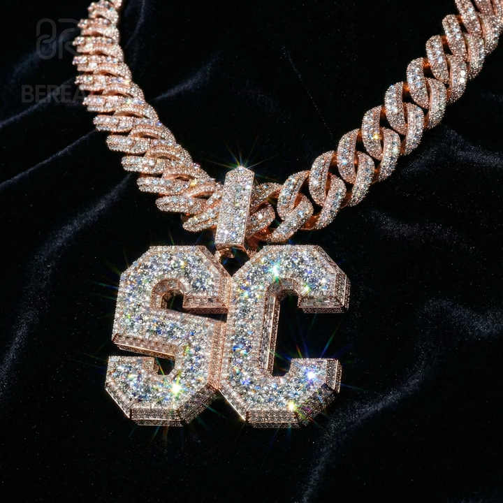 จี้เพชรโมอิสซาไนต์ทรงกลมผ่านการทดสอบเพชร VVS พร้อมจี้ตัวอักษรแบบกำหนดเอง สไตล์ฮิปฮอปหรูหราประดับเพชร 3 มิติ สร้อยคอจี้สำหรับผู้ชาย