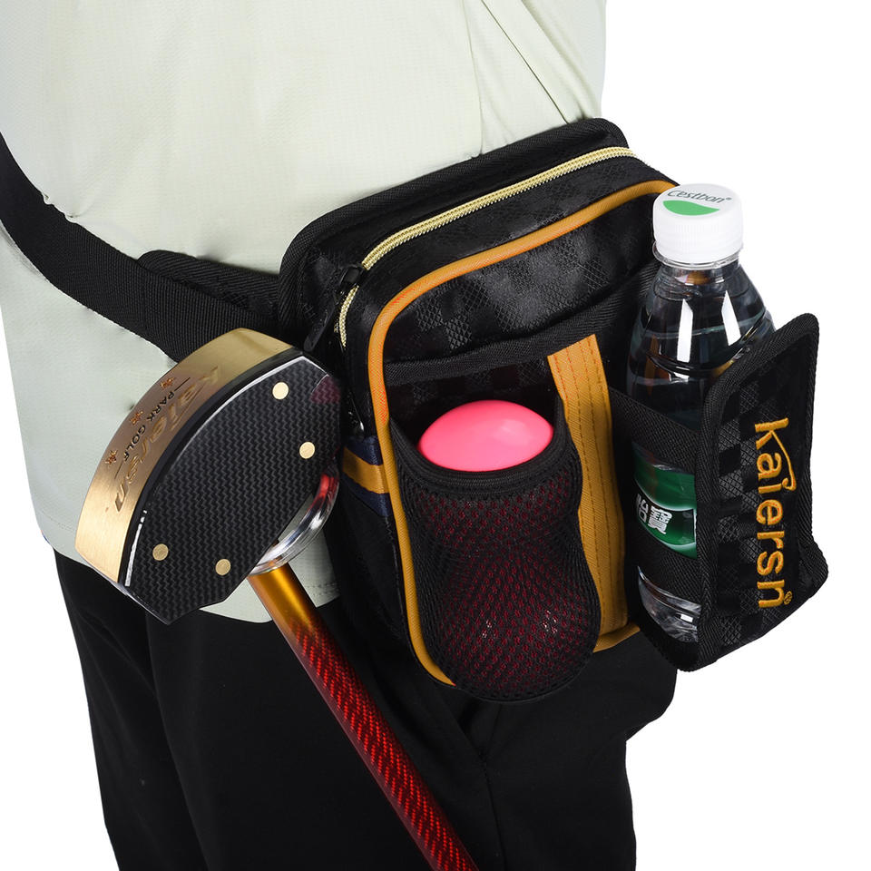 กระเป๋าคาดเอวพาสเซนพาร์คกอล์ฟพร้อมซิปปิด วัสดุพีวีซีกันน้ำ สีเหลือง/แดง ขนาด 14.5x18 ซม. อุปกรณ์จัดเก็บลูกบอล