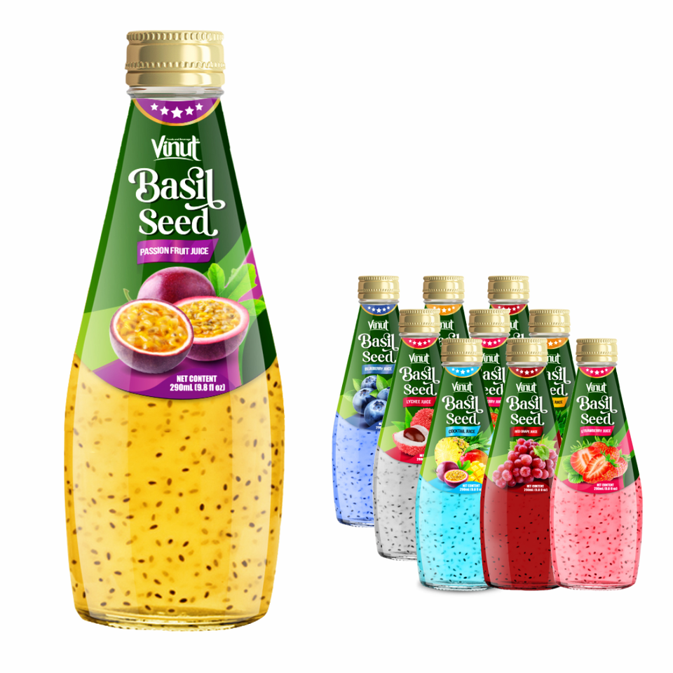 เครื่องดื่มเมล็ดโหระพา290มล.-เวียดนาม, OEM/ODM, ปราศจากน้ำตาล, เมล็ดเชีย, ฉลากส่วนตัว, ตัวอย่างฟรี