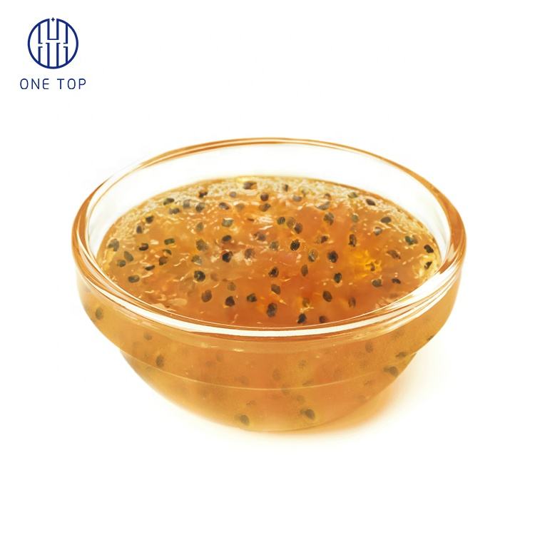 น้ำเชื่อมเสาวรสรสใส่แยมฟองของเหลวส่วนผสมชาในขวด