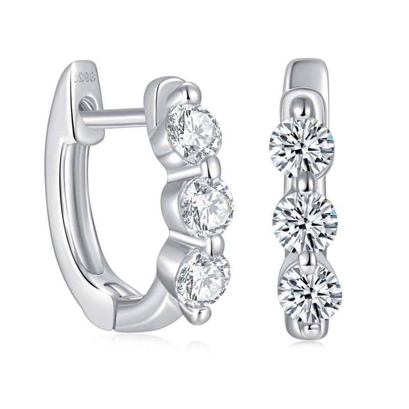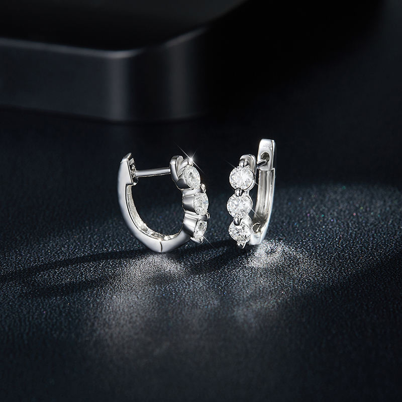 ต่างหูแบบติดหูผู้หญิงชุบทองคำขาวประดับมอสซาไนต์ทรงกลม รุ่น Passport Tester เหมาะสำหรับโอกาสครบรอบหรือหมั้น
