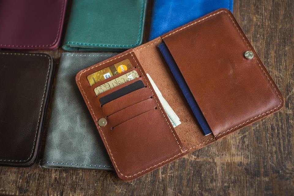 ชุดที่ใส่หนังสือเดินทางและป้ายเดินทางทำจากหนังแท้