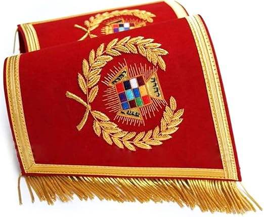 กำไลข้อมือพระราชทรงโค้งสีแดงปักด้วยพู่เทคนิคชุดเครื่องราชกกุธภัณฑ์เย็บปัก