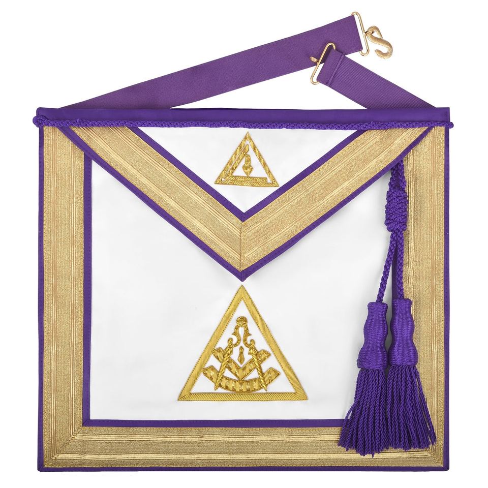ผ้ากันเปื้อนสำหรับสภาหลักที่มีชื่อเสียงในอดีตถักเปียขอบทองและเครื่องปักลายสีม่วง