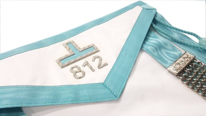ผ้ากันเปื้อนสำหรับผู้เชี่ยวชาญแห่งสมาคมบลูลอดจ์เพนซิลเวเนีย สีฟ้า ปักลายด้วยมือ พร้อมพู่ห้อยโลหะชุบเงิน