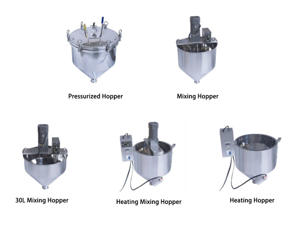 เครื่องบรรจุของเหลวแบบกึ่งอัตโนมัติ พร้อมสายพานลำเลียงและถังพัก ใช้ลม 220V ใช้งานง่าย รับประกัน 1 ปี