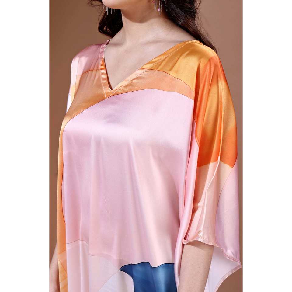 เสื้อและเสื้อเชิ้ตผ้าซาตินผ้าซาตินพิมพ์ลายดิจิทัลสำหรับผู้หญิงสีพาสเทล Dreamscape